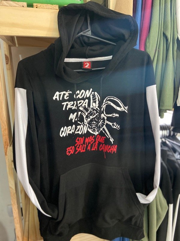 ⚡️Buzo de darlon negro unisex con cuello cordón para regular , bolsillos puños y detalles de líneas blancas en las mangas