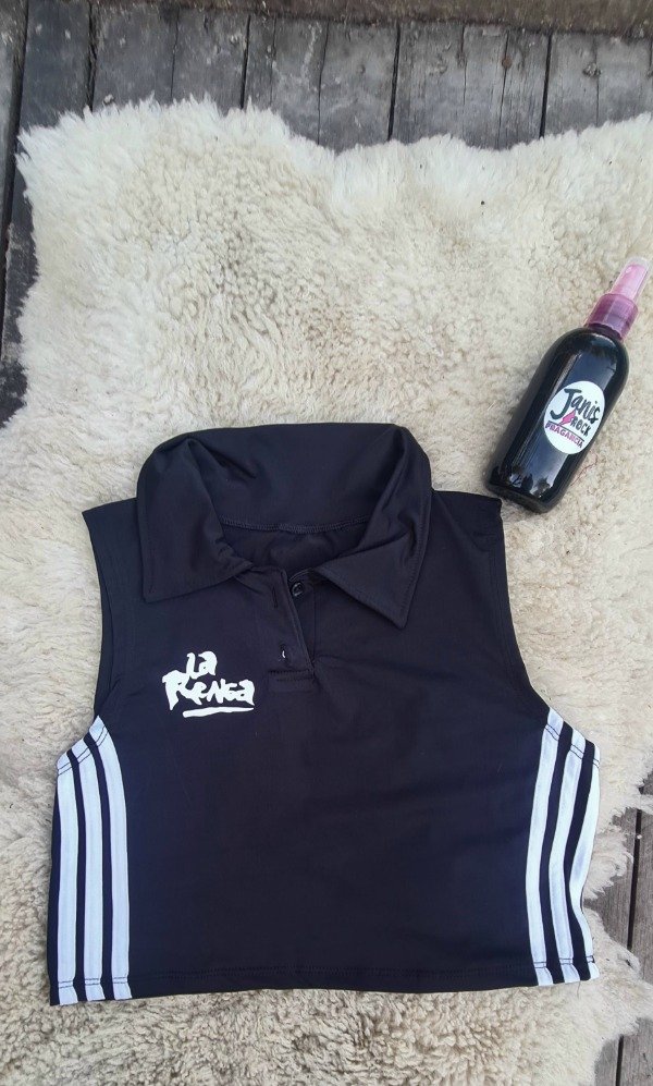 Top estilo chomba de lycra importada con detalle de líneas blancas ,con botones